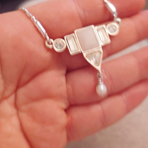 Myynnissä kuvan upea aivan iskemätön kultasepänliikkeestä ostettu hopean värinen siro ketju hopean ja kullanvärisellä riipuksella jossa säihkyy swarovskin(?) kristallit
