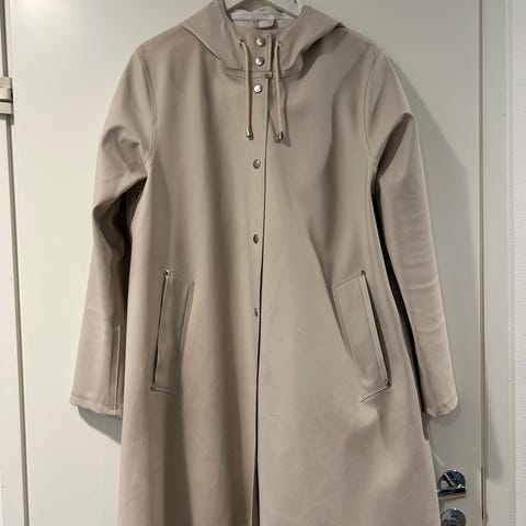 Huikean punainen Stutterheimin Mosebacke sadetakki koossa S. Mosebacke on eritoten naisten malli ja on hieman mekon muotoinen.