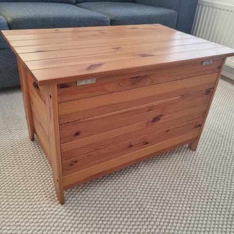 Myydään iso puinen säilytysarkku.