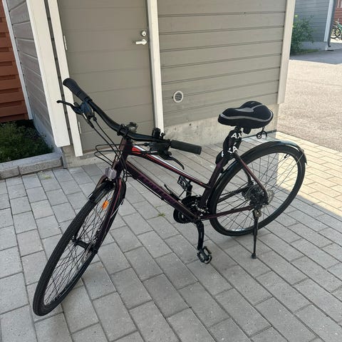 Alkuinnostuksen jälkeen varastoon käyttämättömäksi jäänyt naisten 27 vaihteinen Merida lenkkipyörä. Säästin tytärtä varten, mutta ei kuulemma käytä. Pitäisi saada pois jaloista pyörimästä. (Pyörä, ei tytär:)