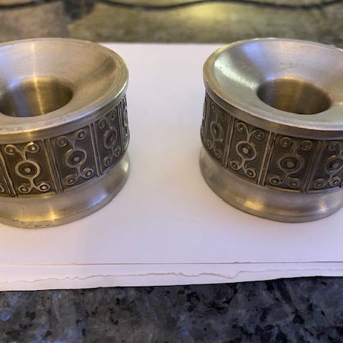 Haugrud 433 norjalaiset tinakynttilänjalat (2 kpl).