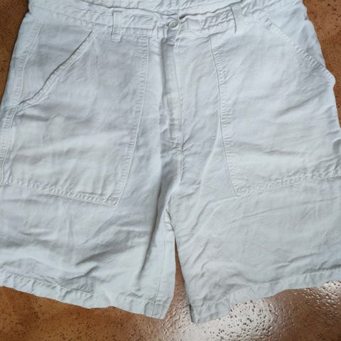 38/40 koon tummansiniset shortsit, siistit. 55% pellava, 45% viskoosia. 2e, nouto.