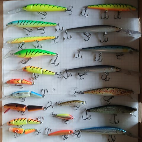 Myytävänä kuvien mukaiset Rapalan Floating uistimet. Osa käytettyjä, osa aivan uusia, kaikki täysin käyttökelpoisia.
