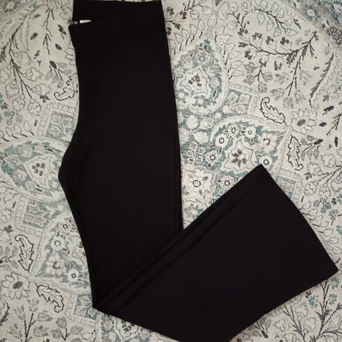 Mukavat ja kevyet David-merkkiset trikoo-housut. Väri musta. Materiaali 92% polyesteri, 8% elastaani, joustavaa ja pehmeää trikoota. Korkea ja joustava vyötärö, resorit lahkeissa. Sopivat rentoon kotikäyttöön, joogaan, venyttelyyn tai vapaa-aikaan. Kunto käytetty, mutta hyvässä kunnossa, ei reikiä tai suuria kulumia