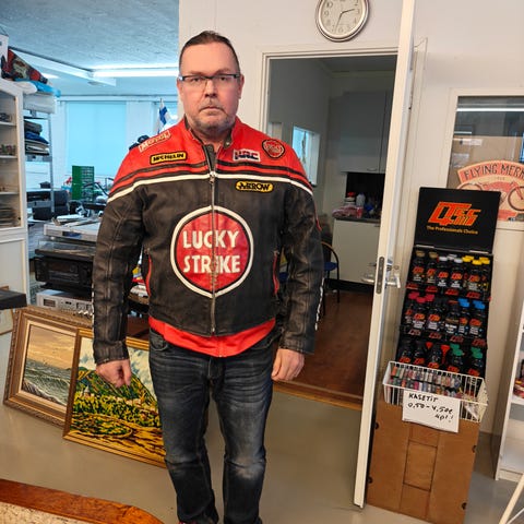 Lucky Strike moottoripyörän nahkatakki XXL – retro racing, aitoa nahkaa