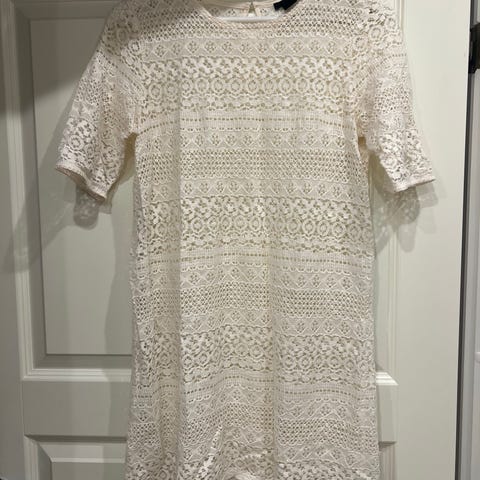 Valkoinen pitsimekko. Menee monen kokoiselle m-xl. Joustaa. Kerran käytetty. Ovh 59,90€.
