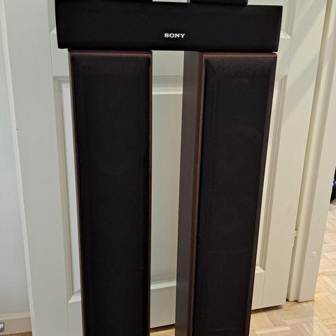 Myydään kuvan mukaiset kaiuttimet + viritinvahvistin tarpeettomina. Kaukosäädin löytyy ja kaiutinjohdot mukaan. Satelliittikaiuttimissa metalliset jalustat, löytyy myös erilliset kiinnikkeet mikäli haluaa laittaa kaiuttimet seinälle.