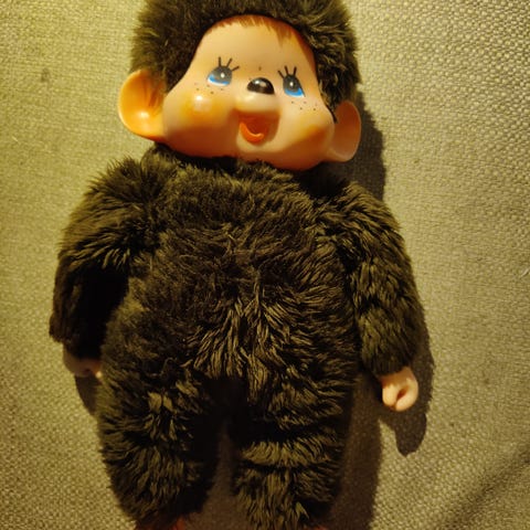 kuvassa oleva pehmolelu Monchhichi vintage pehmo, kunnossa ei moitittavaa, voin postittaa ja ostaja maksaa postikulut, maksu, mp, käteinen, tilisiirto