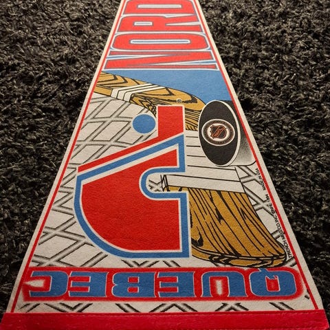 Wincraftin valmistama Montreal Canadiensin viiri. Muutoin ihan siistissä kunnossa, mutta vasemmasta yläkulmasta puuttuu pieni pala.