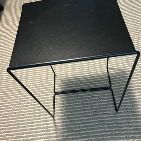 Ihana Everyday Designin musta metallinen sivupöytä/lehtiteline. Ovh 199€. Ostettu design Marketista Helsingistä muutamia vuosia sitten.