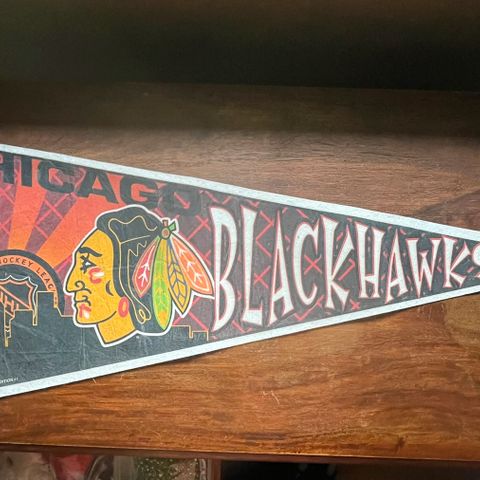 Wincraftin valmistama Colorado Avalanchen viiri. Muutoin siistissä kunnossa, mutta viirun kärjessä pientä kankaan hapsuilua.