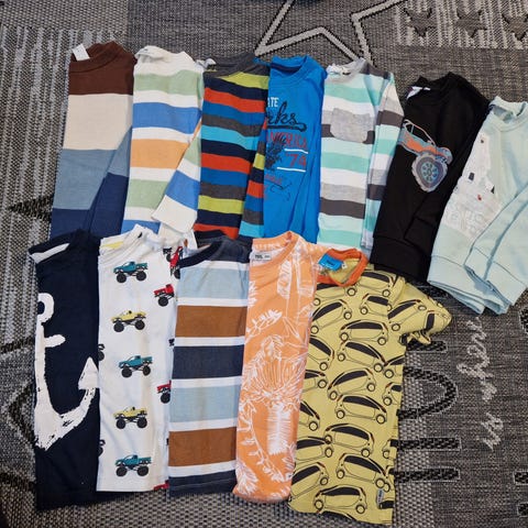 Ehjiä 98 koon paitoja seuraavalle. 5kpl pitkähihaisia, 2kpl t-paita ja 1kpl verkkatakki.