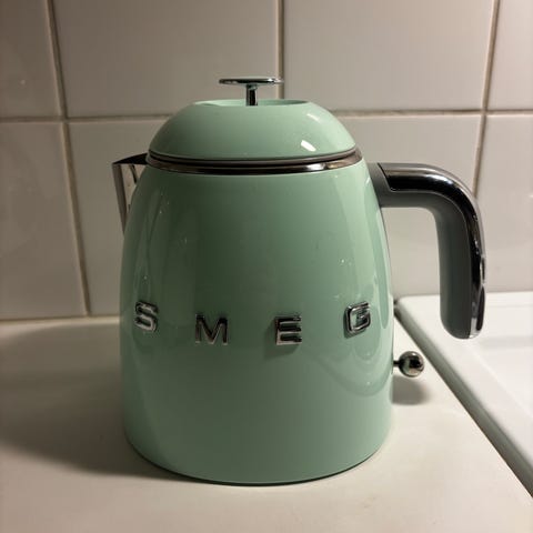 Smegin musta vedenkeitin 1,7l. Kansi ei enää toimi kunnolla, mutta veden keittämiseen toimii hyvin ilmankin. Kannen saa korjattua. Muuten hyvä kunto.