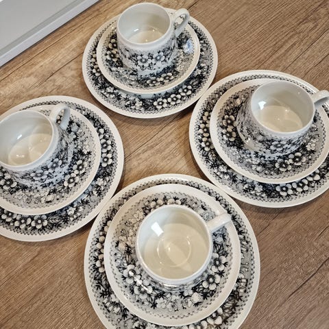 On kuin uusi, vaikka ikää onkin. Raija Uosikkisen suunnittelema sarja. Tuotannossa oli 1967-1974. Tässä siis 1 kahvikuppi ja aluslautanen.