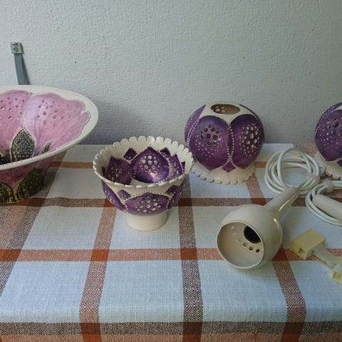 Seinästä vast’ikään irroitetut ulkovalaisimet. Toisen kuvun kaulus rikki, mutta on pysynyt vastakappaleessa vuosikymmeniä.