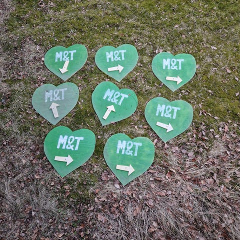 Ripustettavat hääkyltit/opastekyltit/sydänkoriste, 15 kpl. Myydään yksittäin 2,5e/kpl tai 30e/15 kpl. Materiaali: 3mm vaneri. Korkeus noin 17 cm.