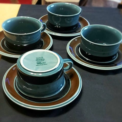 Kauniit 80 luvun klassiset Heljä Liukko Sundströmin teekupit.