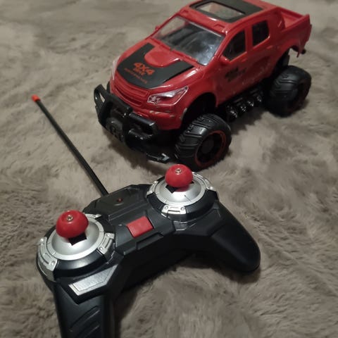 Ohjaimella ohjattava auto, täysin ehjä ja toimiva. Ladattavat patterit.