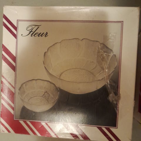 5 kappaletta lasikulhoja kukkakuvioilla. Astian korkeus 5 cm ja leveys noin 14 cm. Yhteishinta 5 euroa.