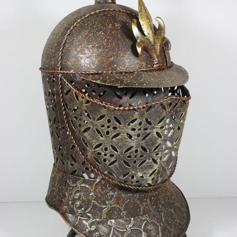 Antiikkityylinen kopio keskiaikaisen ristiretkiritarin kypärästä