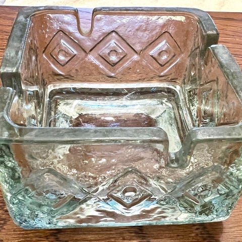 Tamara Aladinin Riihimäen lasille suunnittelema tuhka-astia Taalari. Ollut tuotannossa v. 1967-1983. Hieno kunto. Koko 11,5x11,5cm ja korkeus 7cm.