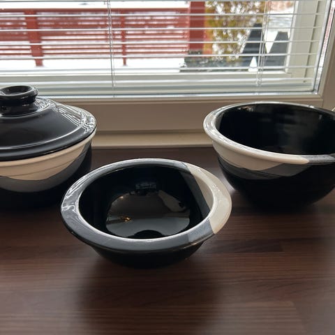 Lisäksi tarjoiluastioita, kulhoja, kannu, kalalautanen, iso uunivuoka, yms.