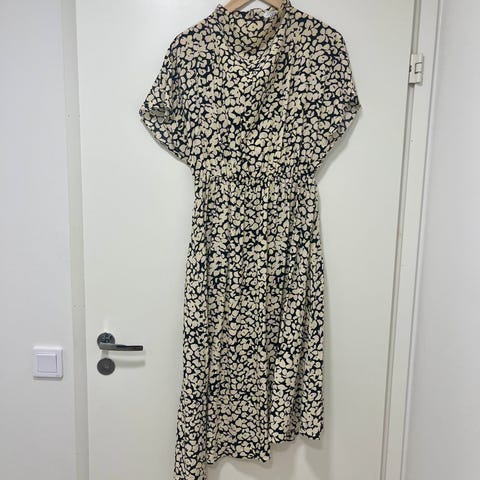 Kertaalleen käytetty, uudenveroinen & Other Stories viskoosimekko leopardikuvioin (100 %). Koko 36 ja vastaa sitä hyvin. Pohjaväri armeijanvihreä. Pinterestin kuvasta näkee, miltä näyttää päällä. Nouto 40100. (Menee varmaan myös Miniärränä + 6,9e)