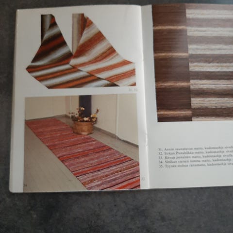 Tekstiilitaiteilijoiden sommittelemia mattoja, postitus helposti kuoressa xxs paketti kotipostilaatikkoon.Hinta 5€ postit kirjeenä 3€