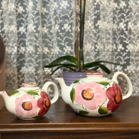 Teekannu, jossa on ruskea savimateriaali ja bambukahva. Kansi on irrotettava, ja kannu sopii erinomaisesti teen tarjoiluun. Soveltuu sekä koriste-esineeksi että käytännölliseen käyttöön. Kuvassa kannessa pieni roso pinnassa. Ei näkyvä.