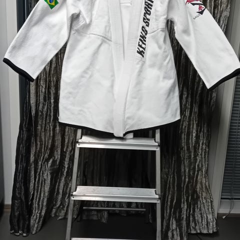 Myydään käytettynä ostettu jujutsu Gi takki. Mukaan saa halutessaan valkoisen vyön ja siniset housut, jotka on kuitenkin saksilla napsaistu lyhyemmiksi.