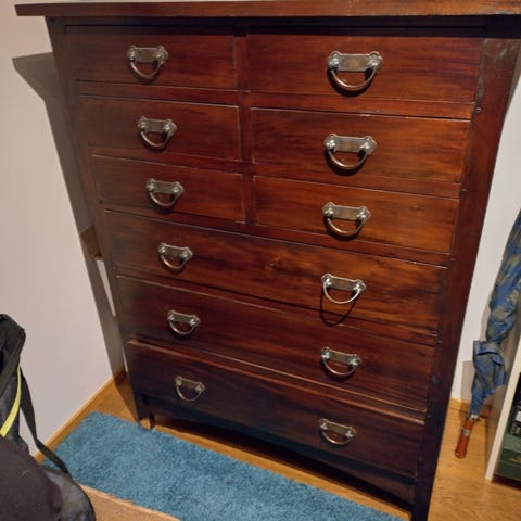 Italiasta tuotu ja Italiassa valmistettu aitoa pähkinänpuuta pähkinän värissä jossa on kullatut yksityiskohdat. Mitat 140x100x60 vm