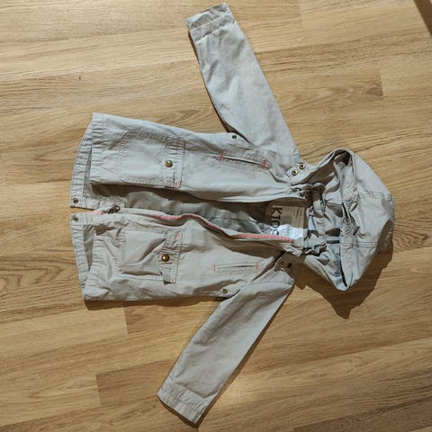 Hyvässä kunnossa, moiteet nepparien värin kuluminen kun tällä on laskettu liukumäkeä naama edellä ja aran värin takia tummentumaa hihoissa.
