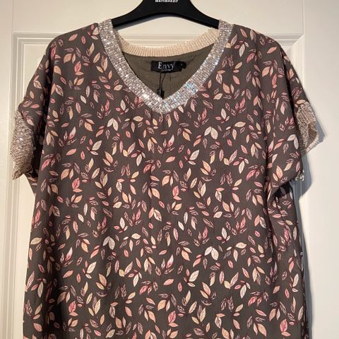 3/4 osa hihat. Pohjaväri musta. Kuviollinen viskoosi paita. Ei jousta. Oikein hyväkuntoinen ellei uudenveroinen.