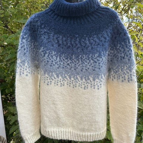 Kaunis käsintehty neulepaita 100% Lettlopi villaa. Roosa+luonnonvalkoinen.