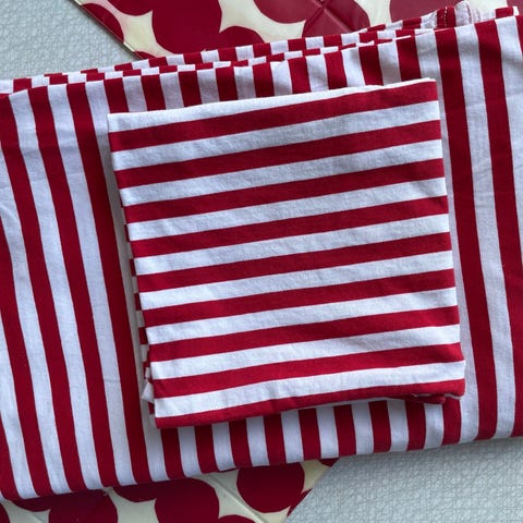 Hakusanoja: tasaraita, trikoo, trikoinen, trikoopussilakana, pussilakanat, lakanat, petivaatteet, trikoota, raidallinen, junior