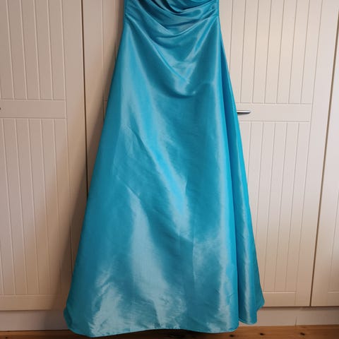 Tumman sininen vanhojentanssi mekko mustalla pitsi helmalla. Mekon mukana tulee valkoinen vanne hame ja mustat hanskat. Mekkoa on käytetty kerran.