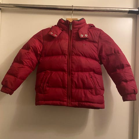 Hilfigerin toppatakki koossa 3T eli n. 2-3-vuotiaalle. Ripustuslenkki huonossa kunnossa.