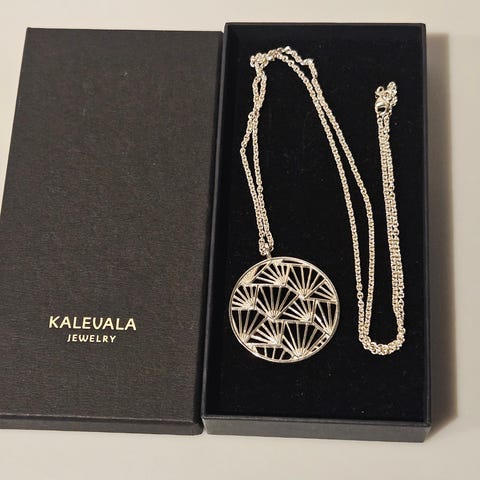 Uuden veroinen, vain kokeiltu kerran. Riipuksen halkaisija 45mm, ketjun pituus 50cm. Mukana myös punainen tafti-nauha ja mm. Kalevala hoito-ohje. Rasia siisti.