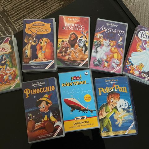 5kpl VHS kasetteja. Lasten elokuvia. Lumikki ja seitsemän kääpiötä, maa aikojen alussa IV, Helen Keller ja viidakkokirja. 1e/kpl
