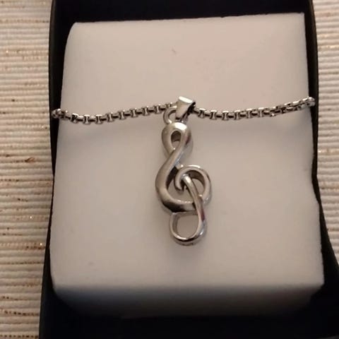 Myydään käsin taottu nuottiavain-kaulakoru. Tyylikkään nuottiavaimen on takonut nummelalaisen Vuorenpeikon pajan seppä Simo Oksa.