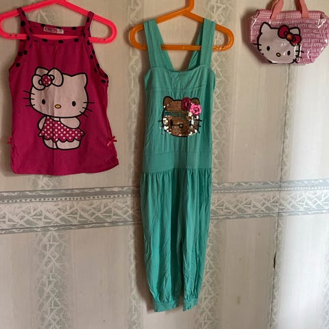 Myydään kahdet siistit vaaleanpunaiset Hello Kitty sivuverhot, koko n. 134x174.