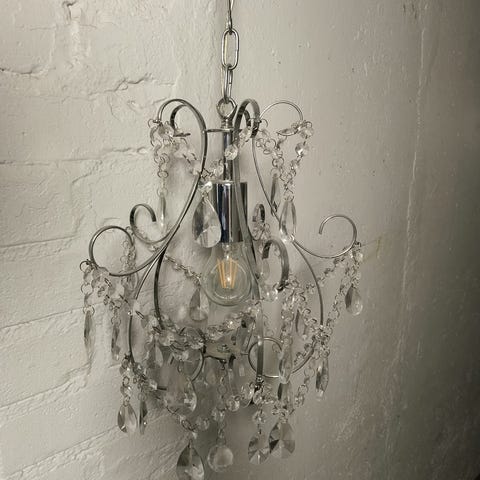 Säädettävä lamppu kuvulla millä voi piilottaa johdot. Tähän päälle voi ostaa minkä haluaa varjostimen erikseen. töpseli on kiinni