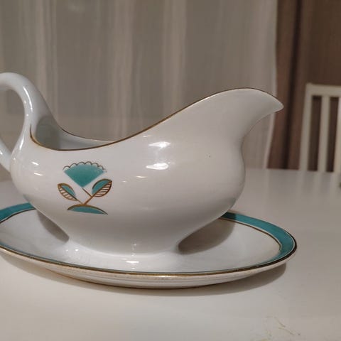 Arabian valmistama kastikekaadin. Herkku koristeen on suunnitellut Raija Uosikkinen. Koriste on ollut tuotannossa vain 1957–1962. Astian suunnittelija Ulla Procopé, Käytössä ollut ehjä kaadin, hieman kulumaa kuvioissa ja alkavaa krakeloituimista. Ei lohkeamia, eikä säröjä tms. Mitat: korkeus 5 cm, halkaisija 11,5 cm.
