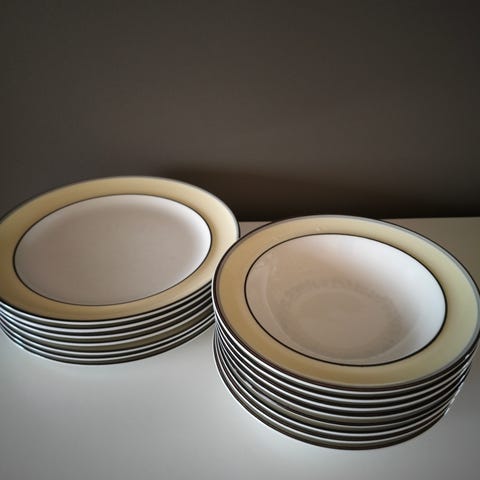 Lautaset ovat ehjiä, erittäin vähän käytettyjä.