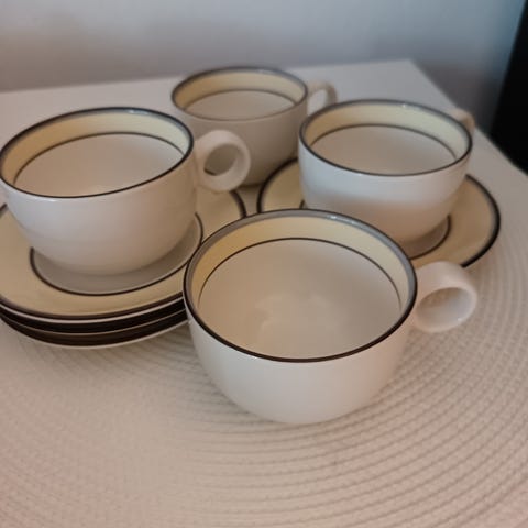 Myydään 6 kappaletta Arabian Veranda matalia ruokalautasia. Lautasen halkaisija 24,5 cm.