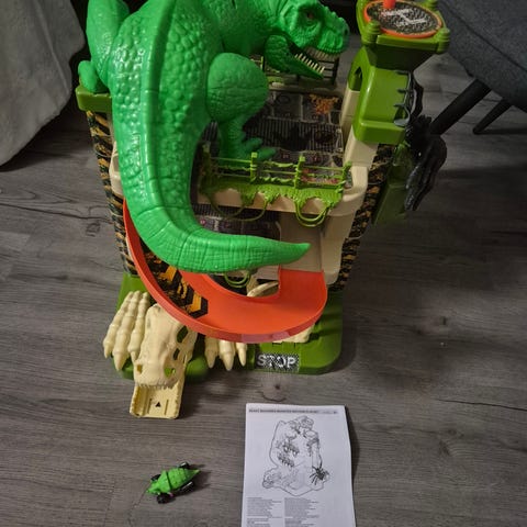 Hinausauto valo- ja ääniefekteillä, hinauspuomilla ja köydellä. Hinattavan auton alle asetettava ”hinaustarjotin” on toiselta puolelta rikki. Käytönjälkiä.