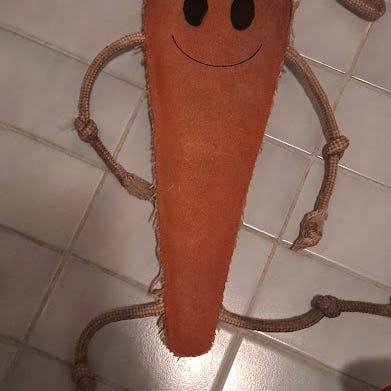 Pitkä keppi joka ei juurikaan taivu, pitkä naru ja päässä käärmeenkieli