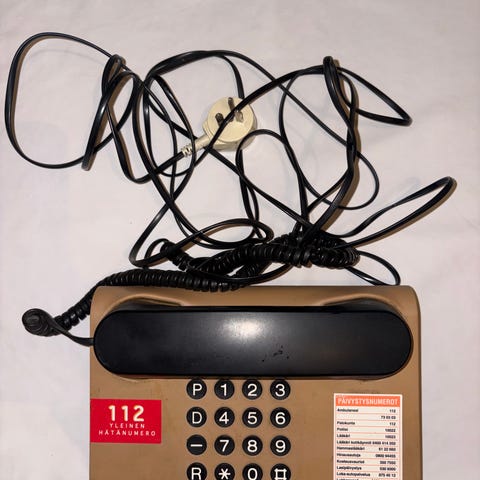 Lakkapinta. Koneisto sisällä. Johto kulunut. Kampi tallessa ja kello soi.