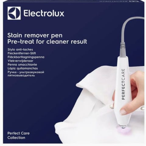 Pari kolme kertaa käytössä ollur Electroluxin tahranpoistokynä. Toimii normaalisti ja tehoaa sitkeisiin tahroihin. Pakettia en löytänyt mutta ohjeet on helpot. Johto seinään, vaatteen alle pyyhe/kangas, pesuainevettä kuppiin ja kostuta tahra sillä. Nappia koskettamalla antaa ultraääntä kuiduille. Löytyy myös netistä tarkemmat ohjeet.