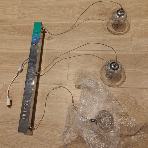 Keittiössä ollut lamppu johon kuuluu tuikkukipot. Palvellut hyvin, todella kaunis. Tuikkukipot tallessa ja ehyet.